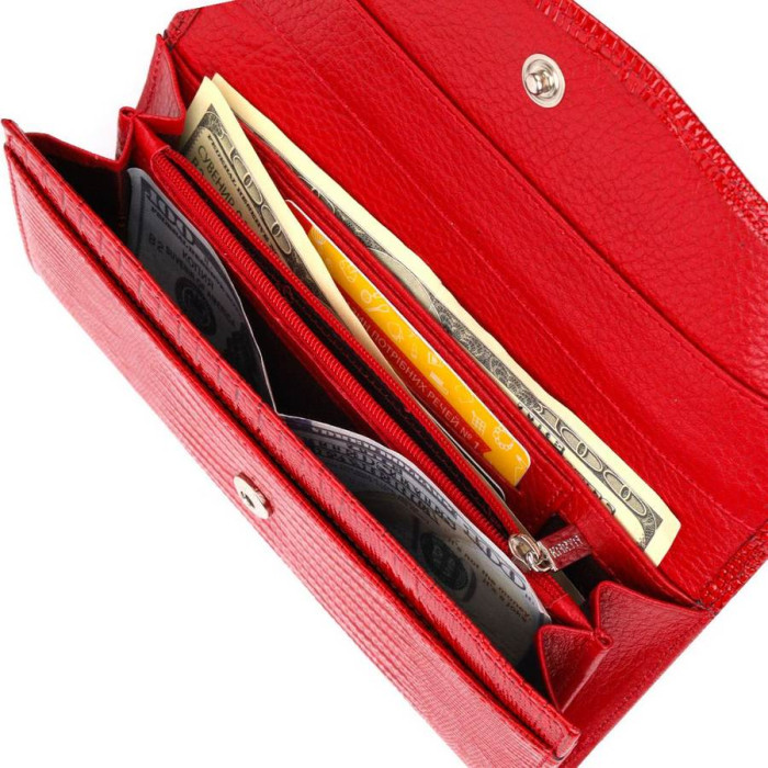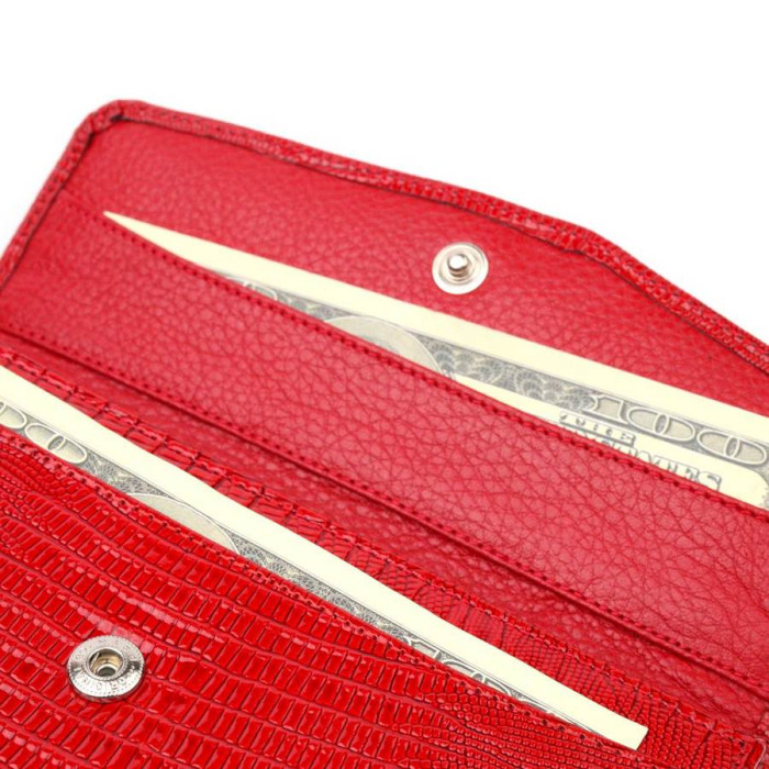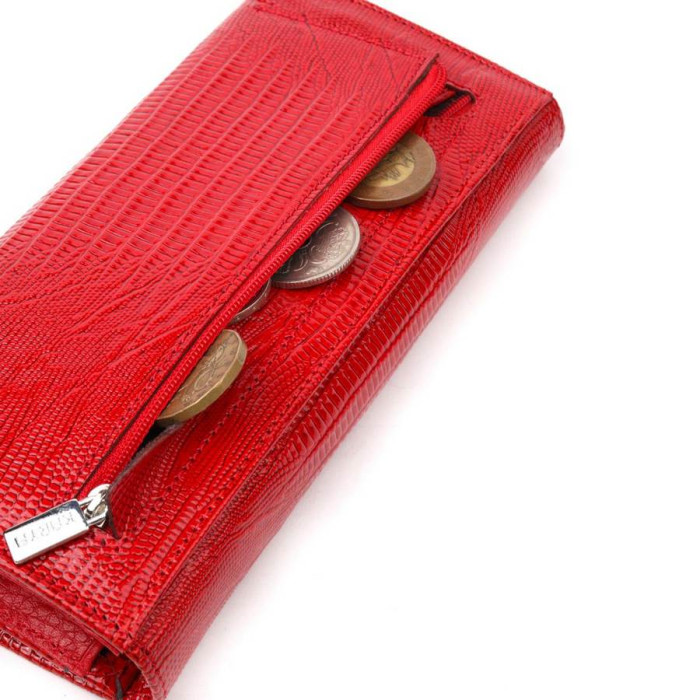 Модный женский кошелек из натуральной лакированной кожи, с тиснением под змею, в красном цвете. Складывается аксессуар пополам, закрывается клапаном на кнопку. Качественная фурнитура дополняет и украшает изделие. Такой кошелек из натуральной кожи - это идеальный вариант на каждый день для тех, кто ценит качество, удобство и комфорт, а также будет отлично дополнять Ваш повседневный образ. Упакован аксессуар в фирменную коробку и пакет бренда. Изделия из натуральной кожи всегда будут отличным подарком для близкого человека.
