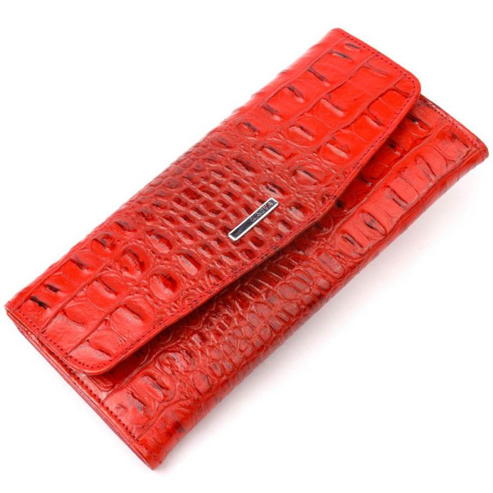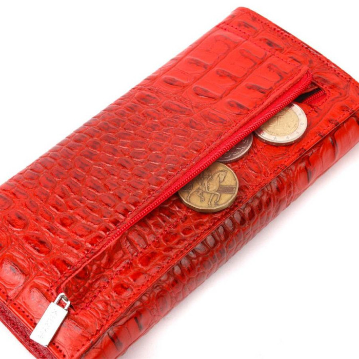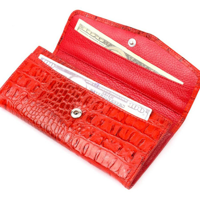 Яркий женский кошелек из натуральной кожи, с тиснением под крокодила, в красном цвете. Складывается аксессуар пополам, закрывается клапаном на кнопку. Качественная фурнитура дополняет и украшает изделие. Такой кошелек из натуральной кожи - это идеальный вариант на каждый день для тех, кто ценит качество, удобство и комфорт, а также будет отлично дополнять Ваш повседневный образ. Упакован аксессуар в фирменную коробку и пакет бренда. Изделия из натуральной кожи всегда будут отличным подарком для близкого человека.
