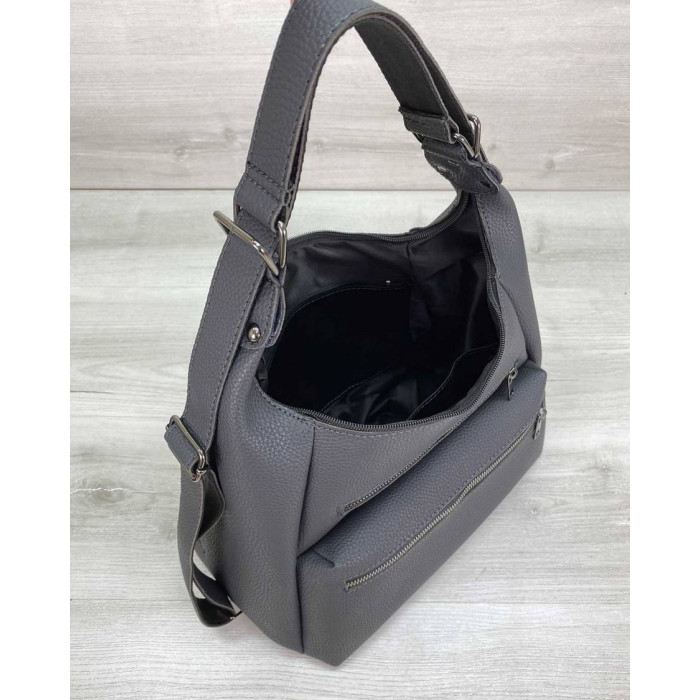Сумки 59314 от производителя Welassie (Украина) из экокожи высокого качества. Материал морозостойкий, эластичный. Имеет одно отделение, которое открывается при помощи молнии. Внутри сумки есть открытый карман и карман на молнии. Снаружи сумка имеет 1 отделение на молнии и 3 кармана на молнии.