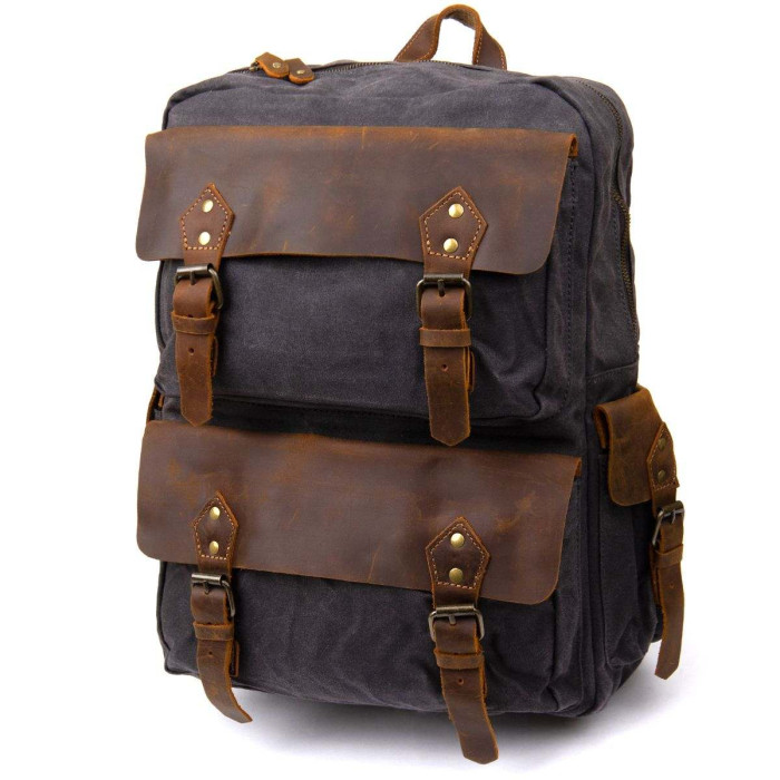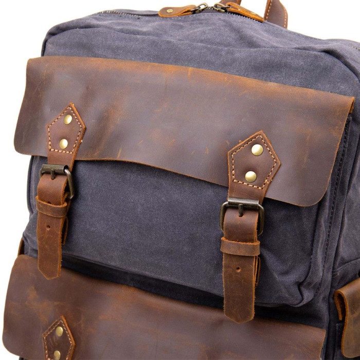 Місткий текстильний рюкзак в поєднанні з натуральною винтажною шкірою, який чудово комбінується зі стилем кежуал, спортивним або вінтажним. Якщо Ви шукали надійний рюкзак на безліч сезонів, то він перед вами. Рюкзак ідеально підійде під стандартний ноутбук. Такий рюкзак - мрія будь-якого мандрівника. Стильний рюкзак з якісного текстилю, з надійною фурнітурою, стане невід'ємним помічником, як у повсякденному житті, так і в подорожах.