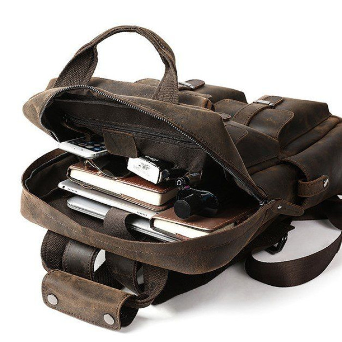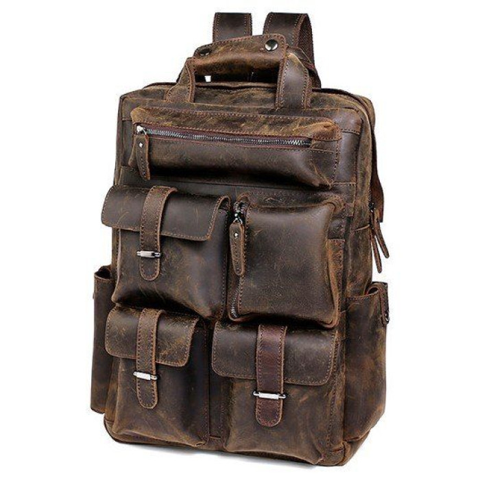 Прекрасний варіант туристичного рюкзака. Дуже вмісткий. Ще є кишеня для ноутбука. Виконаний з натуральної шкіри і прослужить вам набагато більше ніж текстильний. Виглядає розкішно. Рюкзак багатофункціональний і зручний у використанні. Можна носити як за шкіряні ручки, які з'єднуються зверху виробу, так і на плечах. Буде чудовим подарунком для близької людини. Підійде як чоловікові, так і жінці.