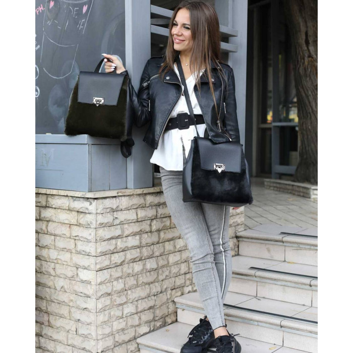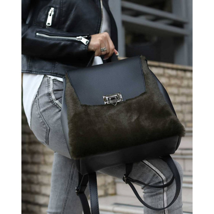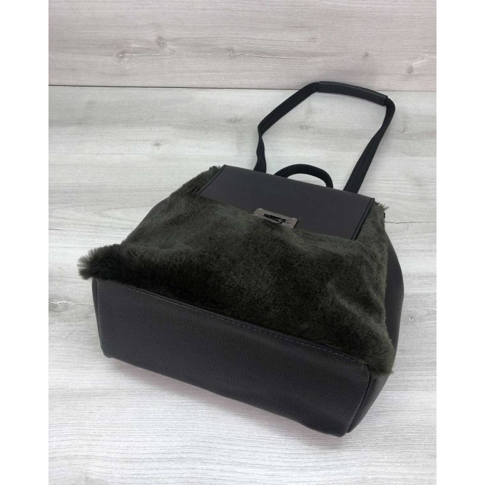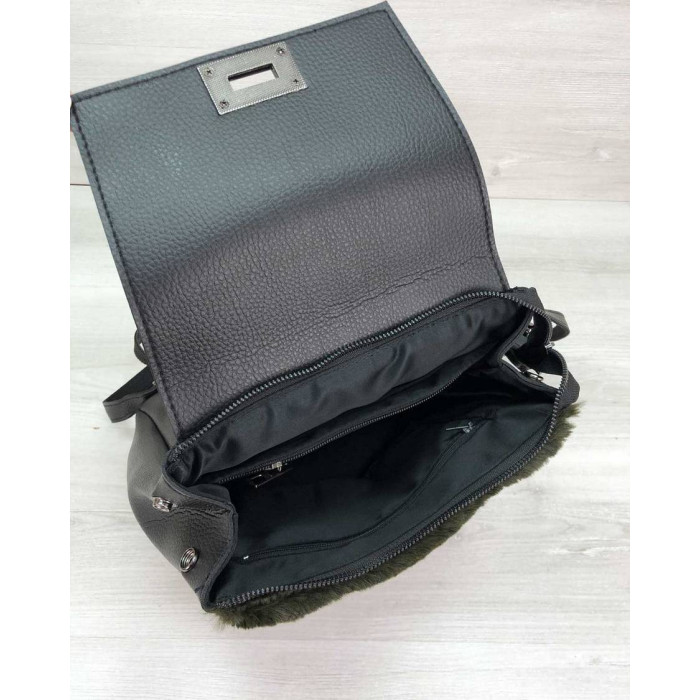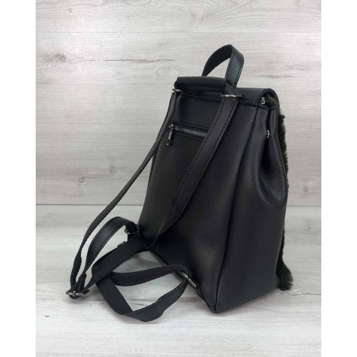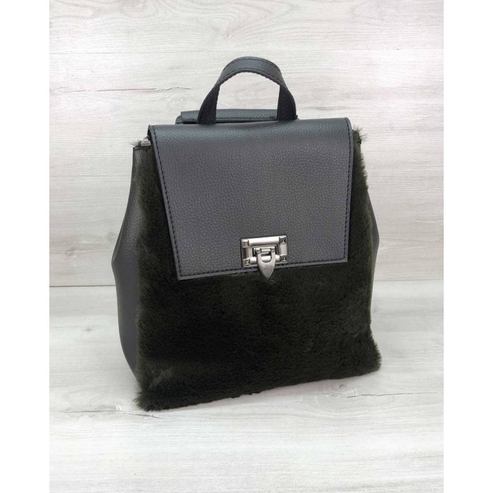 Рюкзак Фабі чорний з оливковою хутром WeLassie