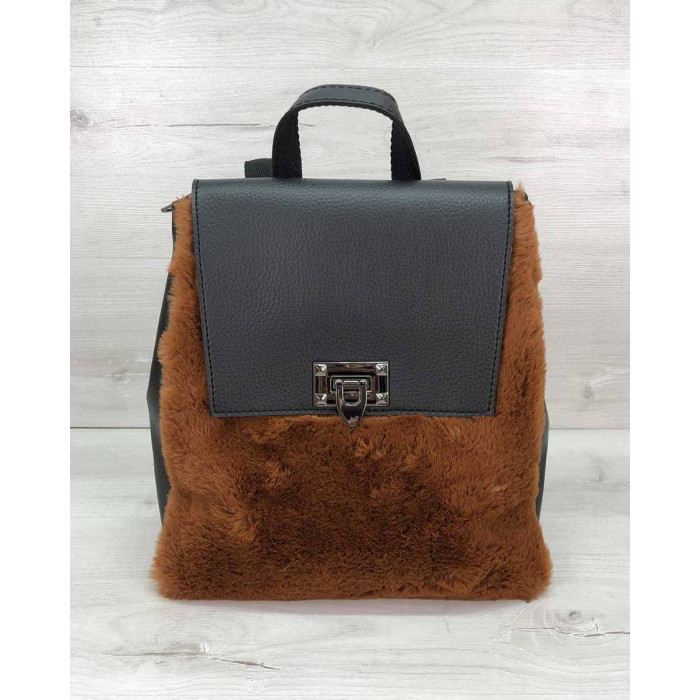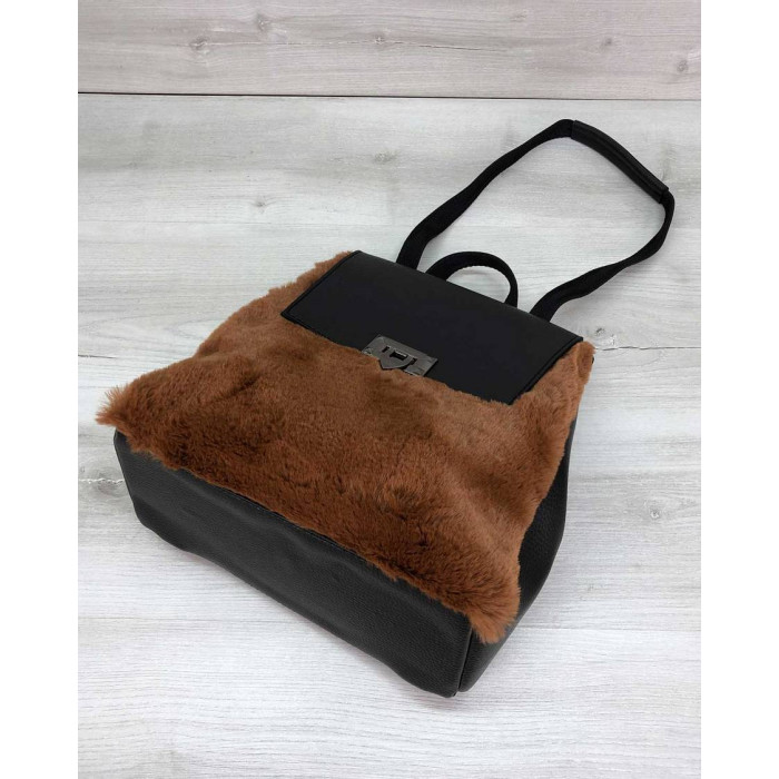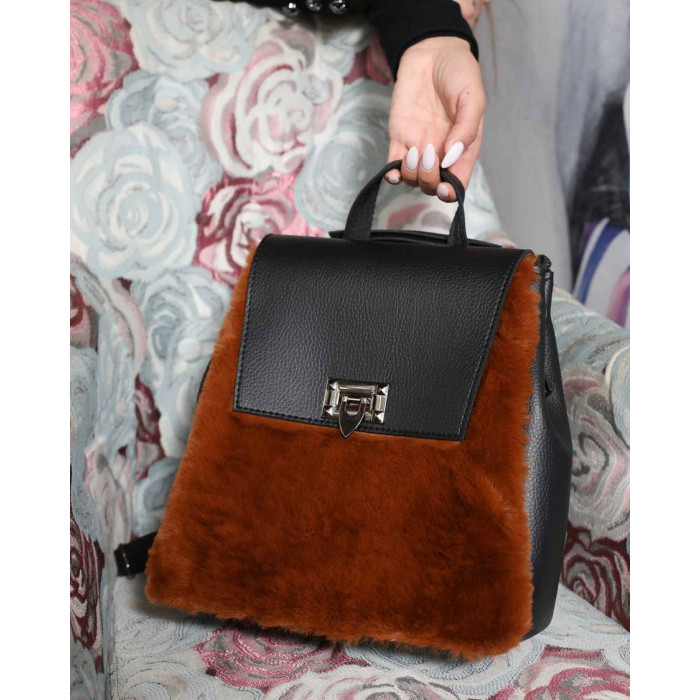 Стильний жіночий молодіжний рюкзак Фабі компанії Oleto виготовлений зі штучної шкіри високої якості, хутро штучне. Еко-шкіра морозостійка, еластична, щільна. Основне відділення застібається на блискавку, кришка на клапан. Всередині сумки є дві кишені: відкрита і на блискавки. Також є вшита косметичка і велика відкрита кишеня для мобільного телефону або гаманця. Зовні є кишеня для дрібних предметів.