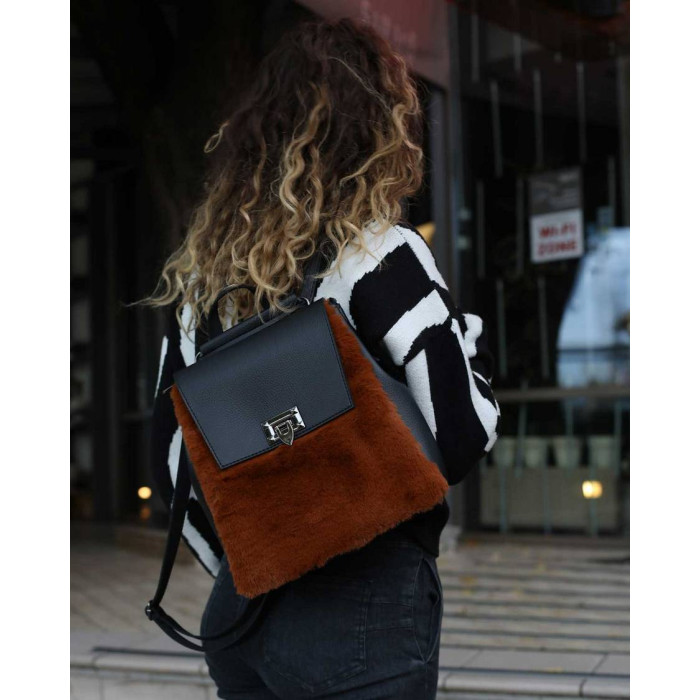 Рюкзак Фабі чорний з рудим хутром WeLassie