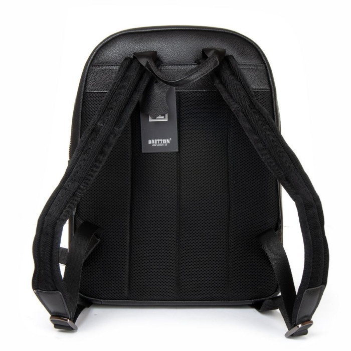 Великий чоловічий шкіряний рюкзак Bretton. Виготовлений із натуральної м'якої шкіри. Два відділення, що закриваються на блискавці. Усередині основного відділення знаходиться велика кишеня на блискавці та кишеня для нетбука чи планшета. На фасаді рюкзака розташовані дві місткі кишені на блискавці. Широкі та м'які плечові лямки регулюються по довжині.