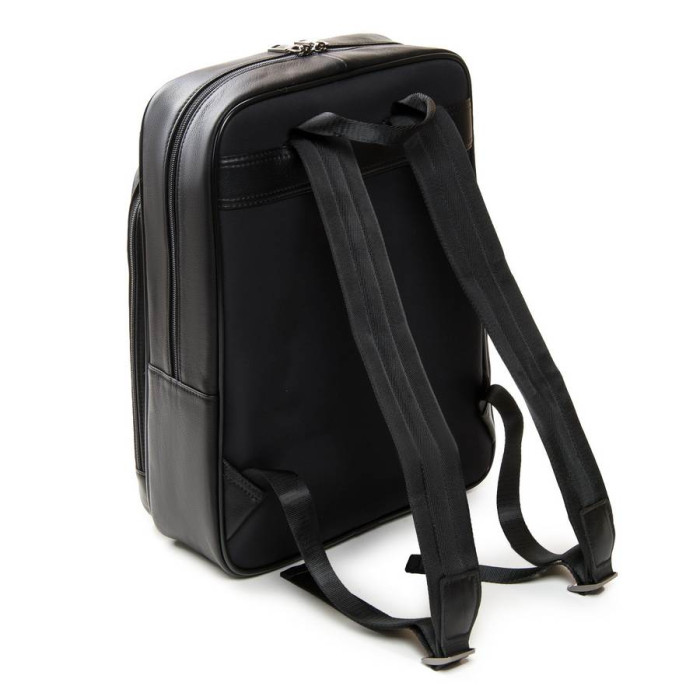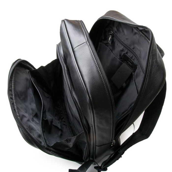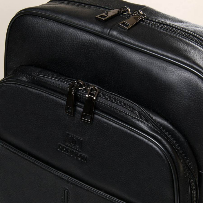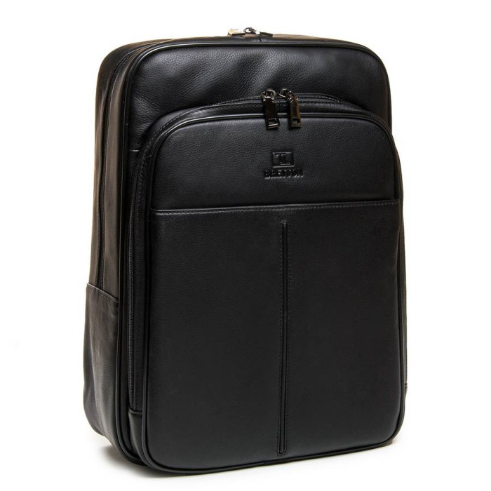 Великий чоловічий шкіряний рюкзак Bretton. Два відділення, закриваються на блискавку. Усередині основного відділення знаходиться велика кишеня на блискавці, здвоєний кишеню для смартфона і кишеню для нетбука або планшета. На фасаді рюкзака розташована глибока кишеня на магнітній кнопці, а на зворотному боці кишеня на блискавці. Широкі і м'які плечові лямки регулюються по довжині.