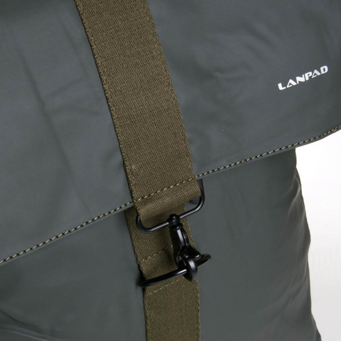 Великий і полегшений рюкзак Lanpad. Виготовлений з матеріалу з водовідштовхувальним покриттям. Під клапаном знаходиться одне відділення, яке додатково закривається на блискавку. Всередині відділення є бічна кишеня на блискавці, і на внутрішній стороні клапана також є кишеня на блискавці. Плечові лямки регулюється по довжині.