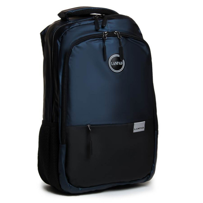 Міський рюкзак Lanpad. Виготовлений з матеріалу з водовідштовхувальним покриттям. Рельєфна спинка ущільнена. Два відділення, що закриваються на блискавку. Усередині є бічна відкрита подвійна кишеня та кишеня для ноутбука. На фасаді знаходиться одна кишеня на блискавці, а на бічних стінках є дві кишені-сітки. Плечові лямки регулюються по довжині.