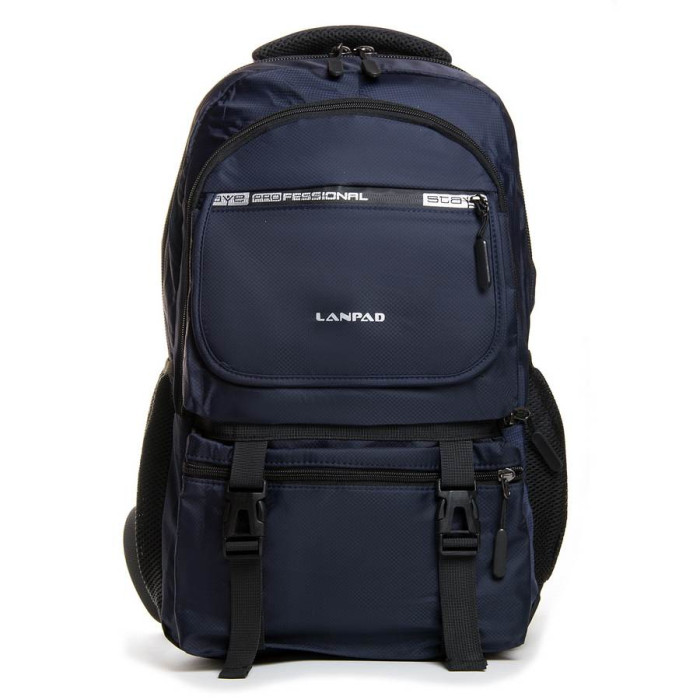 Рюкзак міський Lanpad. Виготовлений з матеріалу з водовідштовхувальним покриттям. Рельєфна ущільнена спинка. Два відділення, закриваються на блискавку. Всередині є бічний відкритий Подвійний кишеню і кишеню для ноутбука. На фасаді знаходиться дві кишені на блискавці і одна відкритий під клапаном. На бічних стінках є кишені-сітки. Плечові лямки регулюється по довжині.