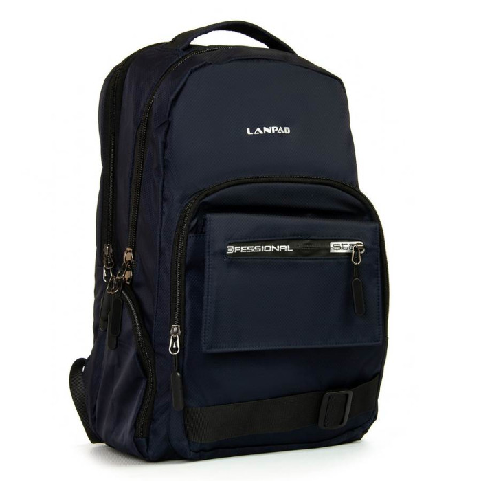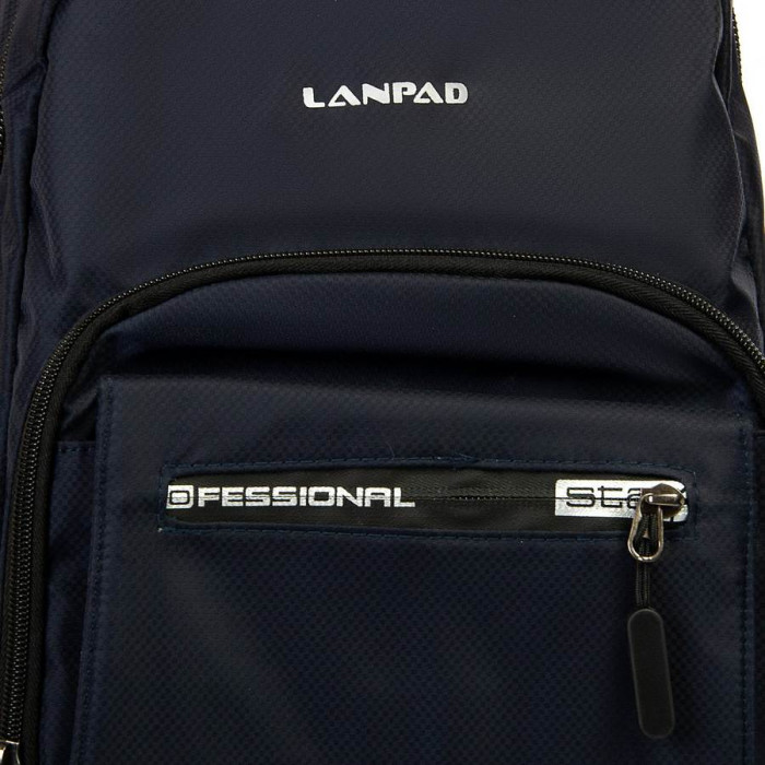 Міський рюкзак Lanpad. Виготовлений з матеріалу з водовідштовхувальним покриттям. Два відділення, що закриваються на блискавку. Усередині є бічна відкрита подвійна кишеня та кишеня для ноутбука. На фасаді знаходяться дві кишені на блискавці, і на бічних стінках також є дві кишені на блискавці. Плечові лямки регулюються по довжині.