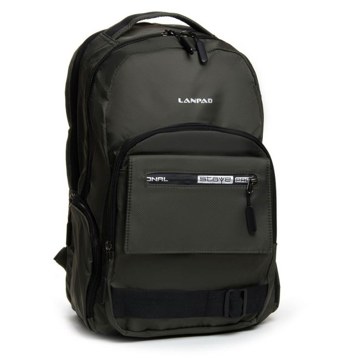 Міський рюкзак Lanpad. Виготовлений з матеріалу з водовідштовхувальним покриттям. Два відділення, що закриваються на блискавку. Усередині є бічна відкрита подвійна кишеня та кишеня для ноутбука. На фасаді знаходяться дві кишені на блискавці, і на бічних стінках також є дві кишені на блискавці. Плечові лямки регулюються по довжині.