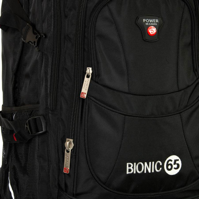 Великий міський рюкзак з щільною спинкою "Power in Eavas". Два відділення, закриваються на блискавку. Усередині одного відділення є кишеня для ноутбука. бічна кишеня на блискавки і невеликі відкриті кишені. Друге відділення з кишенею-органайзером. На фасаді одне відділення і одна кишеня на блискавці. На бічних сторонах рюкзака знаходяться кишені-сітки для пляшок води об'ємом 1 л. Плечові лямки регулюються по довжині і оснащені грудним і поясним ременем. Об'єм 65 літрів.