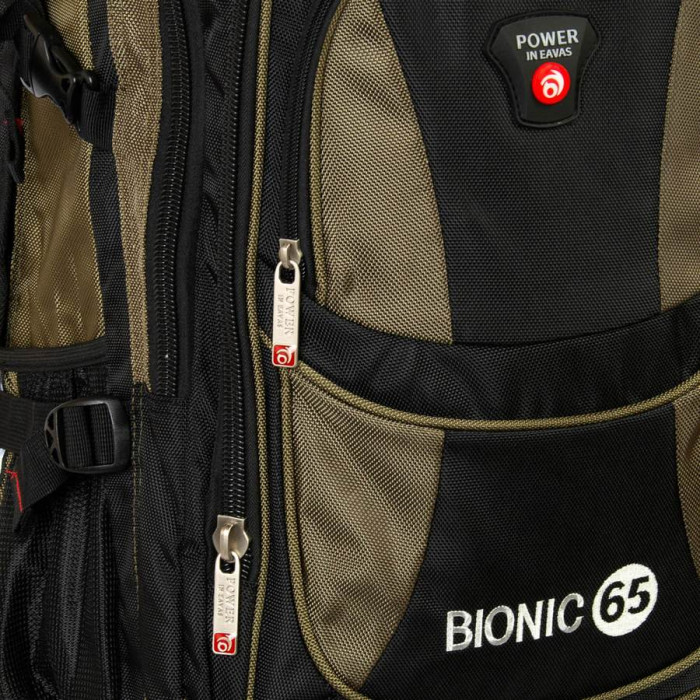 Великий міський рюкзак з щільною спинкою "Power in Eavas". Два відділення, закриваються на блискавку. Усередині одного відділення є кишеня для ноутбука. бічна кишеня на блискавки і невеликі відкриті кишені. Друге відділення з кишенею-органайзером. На фасаді одне відділення і одна кишеня на блискавці. На бічних сторонах рюкзака знаходяться кишені-сітки для пляшок води об'ємом 1 л. Плечові лямки регулюються по довжині і оснащені грудним і поясним ременем. Об'єм 65 літрів.