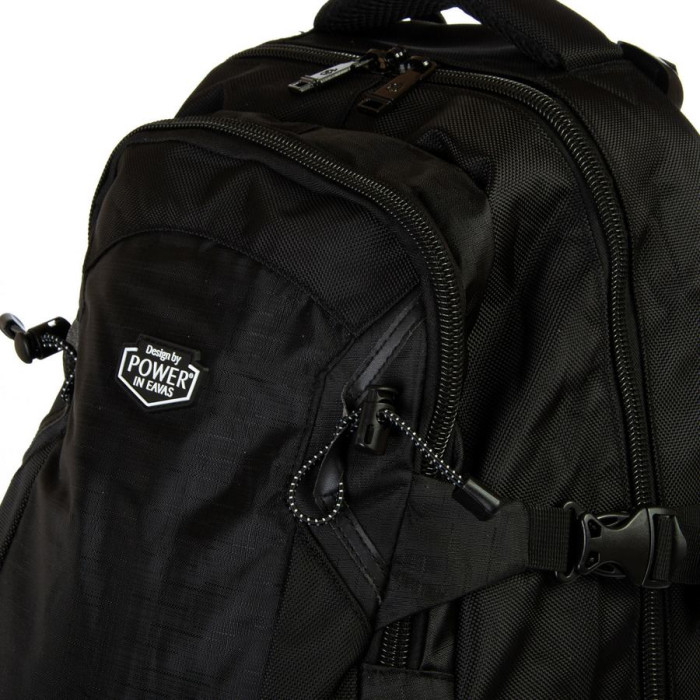 Міський рюкзак з щільною спинкою "Power in Eavas". Два відділення, закриваються на блискавку. Основне відділення з кишенею для ноутбука, підвісною кишенею для смартфону, а також виведенням аудіо і USB кабелю назовні рюкзака. У другому відділенні є великий кишеня-органайзер. На фасаді рюкзака знаходиться кишеня на блискавці, На бічних сторонах рюкзака розташовані відкриті кишені-сітки. Плечові лямки регулюються по довжині і оснащені поясним ременем і грудним стягуванням.
