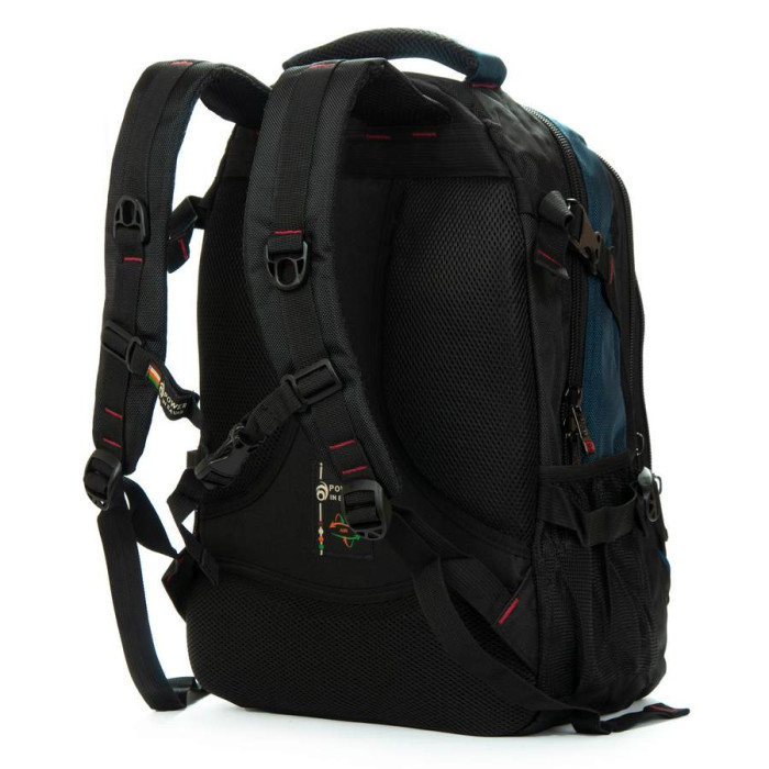 Три відділення, закриваються на блискавку. Основне відділення з кишенею для ноутбука, підвісною кишенею для смартфона. У передньому відділенні є велика кишеня-органайзер.Також, з основного відділення є вихід для навушників на зовнішню стінку рюкзака. На фасаді рюкзака розташована кишеня на блискавці, На бічних сторонах рюкзака розміщені відкриті кишені-сітки.