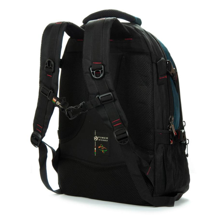 Щільна спинка з м'якими рельєфними вставками для вентиляції. Усередині рюкзака знаходяться три відділення на блискавці. У першому відділенні розташована кишеня-органайзер, а в третьому відділенні є кишеня для ноутбука і кишеня для телефону. Також, з основного відділення є вихід для навушників на зовнішню стінку рюкзака. На фасаді знаходиться кишеня на блискавці. Зовні на бічних сторонах рюкзака розташовані кишені-сітки для пляшок води об'ємом 0,5 літрів.