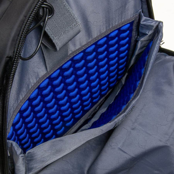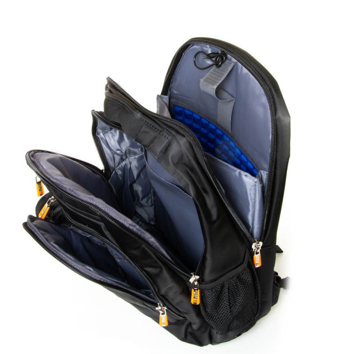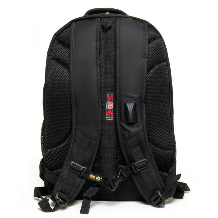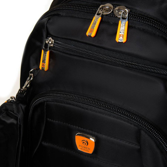 Рюкзак "місто / спорт" ТМ "Power In Eavas". Щільна спинка. Два відділення на блискавках. Всередині першого є велика відкрита бічна кишеня. Друге відділення з кишенею для ноутбука і шнуром для навушників виведеним на ліву плечову лямку. На фасаді Велика кишеня-органайзер на блискавці і одна маленька кишеня на блискавці. На торцях рюкзака відкриті кишені для пляшки води 0,5 л.в комплекті знімна ключниця-косметичка. Плечові лямки регулюються по довжині і оснащені грудною стяжкою.