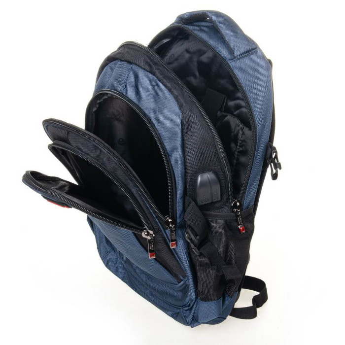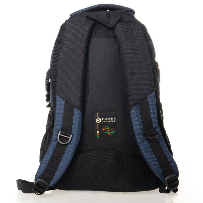 Міський рюкзак з щільною спинкою "Power in Eavas". Усередині одне відділення з кишенею для ноутбука. На фасаді одне відділення і дві кишені на блискавці. На бічних сторонах рюкзака кишені-сітки для пляшок води об'ємом 0,5 л. Плечові лямки регулюються по довжині.