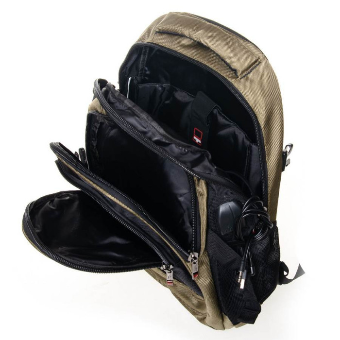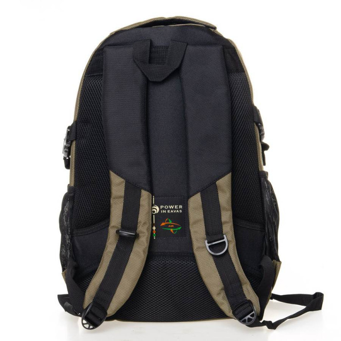 Міський рюкзак з щільною спинкою "Power in Eavas". Усередині одне відділення з кишенею для ноутбука. На фасаді одне відділення і дві кишені на блискавці. На бічних сторонах рюкзака кишені-сітки для пляшок води об'ємом 0,5 л. Плечові лямки регулюються по довжині.