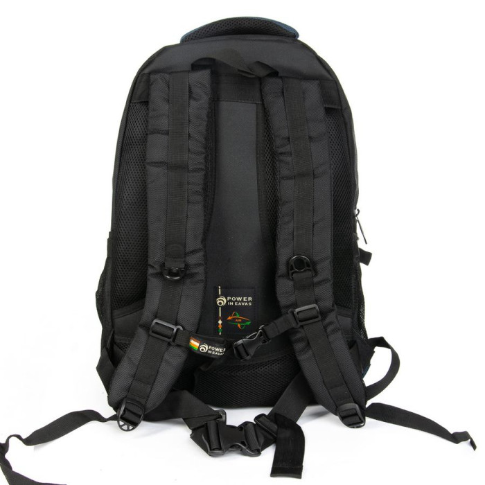 Великий міський рюкзак "Power in Eavas". Щільна спинка з м'якими рельєфними вставками для вентиляції. Усередині рюкзака знаходяться два відділення на блискавці. У першому відділенні розташований кишеня-органайзер, а во-втором відділенні є кишеня для ноутбука і кишеня для телефону. Також, з другого відділення виведені USB і кабель для навушників на зовнішню стінку рюкзака. На фасаді знаходиться велика кишеня на блискавці. Зовні на бічних сторонах рюкзака розташовані кишені-сітки для пляшок води об'ємом 0,5 літрів. Плечові лямки регулюються по довжині і оснащені грудним стягуванням і поясним ременем.