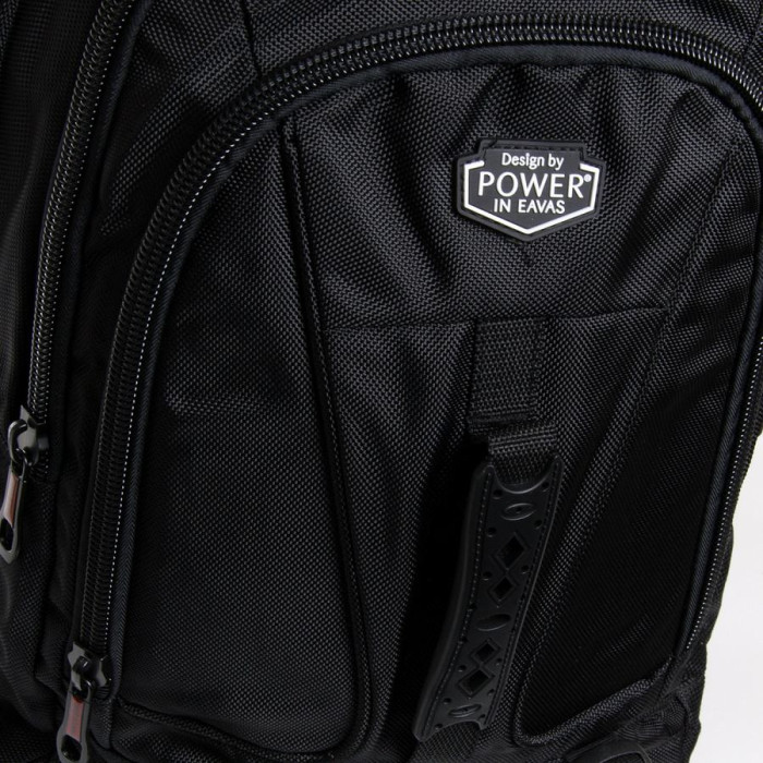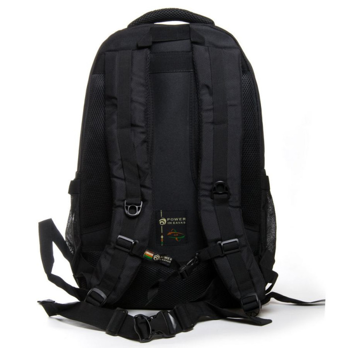 Великий міський рюкзак "Power in Eavas". Щільна спинка з м'якими рельєфними вставками для вентиляції. Усередині рюкзака знаходяться два відділення на блискавці. У першому відділенні розташований кишеня-органайзер, а во-втором відділенні є кишеня для ноутбука і кишеня для телефону. Також, з другого відділення виведені USB і кабель для навушників на зовнішню стінку рюкзака. На фасаді знаходиться велика кишеня на блискавці. Зовні на бічних сторонах рюкзака розташовані кишені-сітки для пляшок води об'ємом 0,5 літрів. Плечові лямки регулюються по довжині і оснащені грудним стягуванням і поясним ременем.
