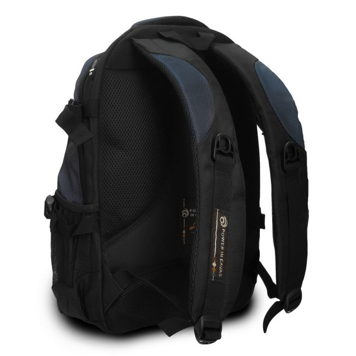Міський рюкзак "Power in Eavas", щільна спинка з м'якими вставками. Усередині рюкзака два відділення на блискавці. У першому відділенні розташований карман- органайзер, во-втором відділенні є кишеня для ноутбука і кишеня для телефону. На фасаді знаходиться кишеня на блискавці. Зовні на бічних сторонах рюкзака кишені-сітки для пляшок води об'ємом 0,5 літрів. Плечові лямки регулюються по довжині.