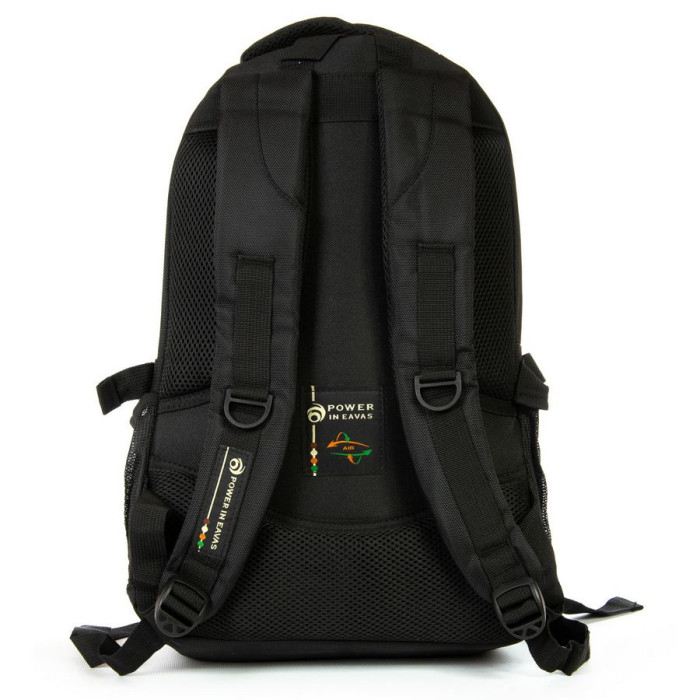 Міський рюкзак "Power in Eavas", щільна спинка з м'якими вставками. Всередині рюкзака два відділення на блискавці. У першому відділенні розташований карман- органайзер, у другому відділенні є кишеня для ноутбука і кишеня для телефону. На фасаді знаходиться велика кишеня на блискавці. Ззовні, на бічних сторонах рюкзака кишені-сітки для пляшок води об'ємом 0,5 літрів. Плечові лямки регулюються по довжині.