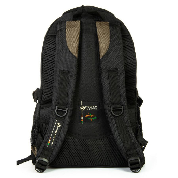Міський рюкзак "Power in Eavas", щільна спинка з м'якими вставками. Усередині рюкзака два відділення на блискавці. У першому відділенні розташований карман- органайзер, во-втором відділенні є кишеня для ноутбука і кишеня для телефону. На фасаді знаходиться велика кишеня на блискавці. Зовні на бічних сторонах рюкзака кишені-сітки для пляшок води об'ємом 0,5 літрів. Плечові лямки регулюються по довжині.