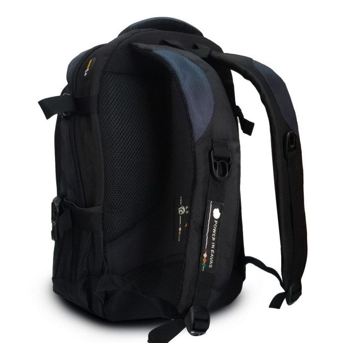 Міський рюкзак "Power in Eavas", щільна спинка з м'якими вставками. Всередині рюкзака два відділення на блискавці. У першому відділенні розташований карман- органайзер, у другому відділенні є кишеня для ноутбука і кишеня для телефону. На фасаді знаходиться кишеня на блискавці. Зовні на бічних сторонах рюкзака кишені-сітки для пляшок води об'ємом 0,5 літрів. Плечові лямки регулюються по довжині.