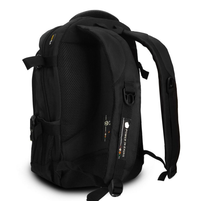 Міський рюкзак "Power in Eavas", щільна спинка з м'якими вставками. Всередині рюкзака два відділення на блискавці. У першому відділенні розташований карман- органайзер, у другому відділенні є кишеня для ноутбука і кишеня для телефону. На фасаді знаходиться кишеня на блискавці. Зовні на бічних сторонах рюкзака кишені-сітки для пляшок води об'ємом 0,5 літрів. Плечові лямки регулюються по довжині.