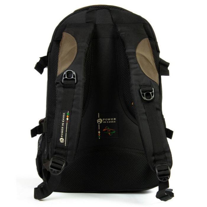 Міський рюкзак "Power in Eavas". Рюкзак має одне основне відділення на змійці, всередині організатора та відділення для ноутбука. На фасаді два додаткові відділення на змійці та з боків кріплення для карематів та для пляшок води 0.5 літрів.
