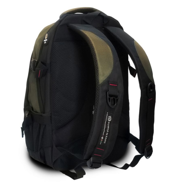 Міський рюкзак "Power in Eavas" із щільною спинкою. Усередині рюкзака є два відділення на блискавці. В одному відділенні органайзер, а в іншому відділенні кишеня для ноутбука та кишеня для телефону. На фасаді знаходяться дві кишені на блискавці. На боках рюкзака розташовані кишені-сітки для пляшок води об'ємом 0,5 літрів. Плечові лямки регулюються по довжині.