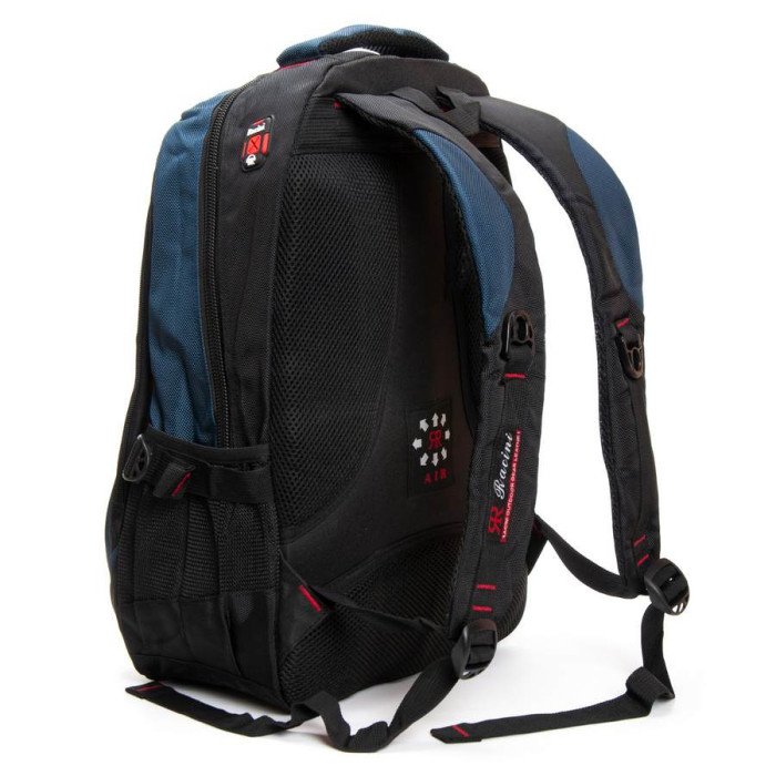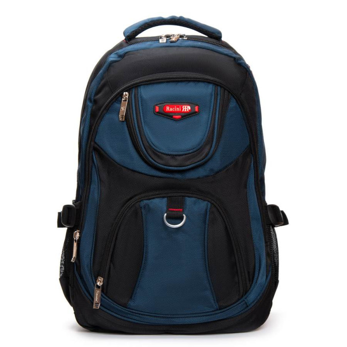 Міський рюкзак «Racini». Щільна спинка з м'якими вставками. Усередині рюкзака два відділення на блискавці. У першому відділенні розташована кишеня-органайзер, у другому відділенні є кишеня для ноутбука і кишеня для смартфона. На фасаді розташовані дві кишені на блискавці. Зовні на бічних сторонах рюкзака розташовані кишені-сітки для пляшок води об'ємом 0,5 літрів.