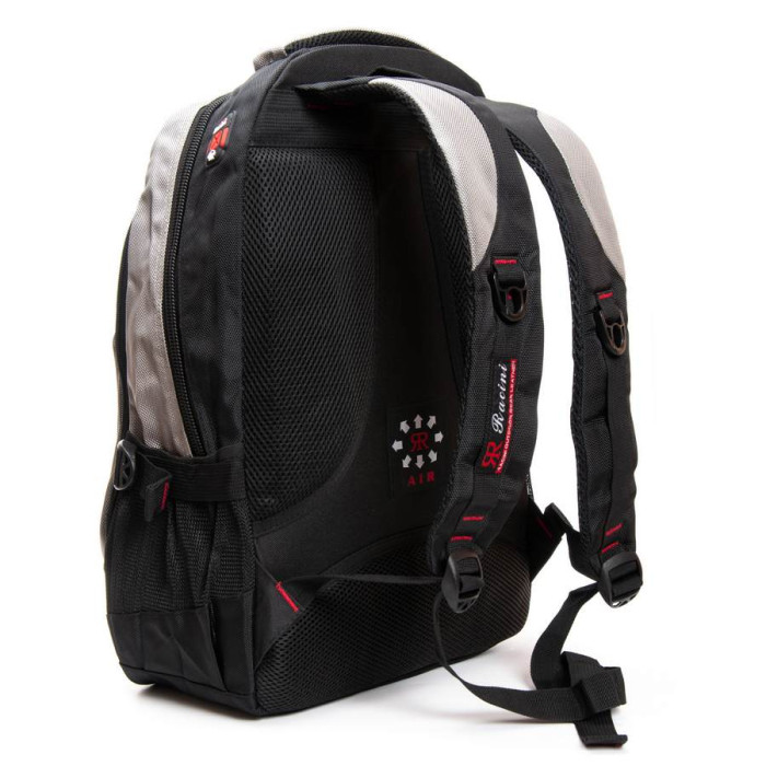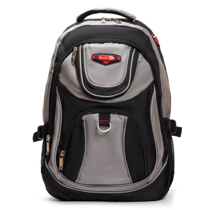 Міський рюкзак «Racini». Щільна спинка з м'якими вставками. Усередині рюкзака два відділення на блискавці. У першому відділенні розташована кишеня-органайзер, у другому відділенні є кишеня для ноутбука і кишеня для смартфона. На фасаді розташовані дві кишені на блискавці. Зовні на бічних сторонах рюкзака розташовані кишені-сітки для пляшок води об'ємом 0,5 літрів.