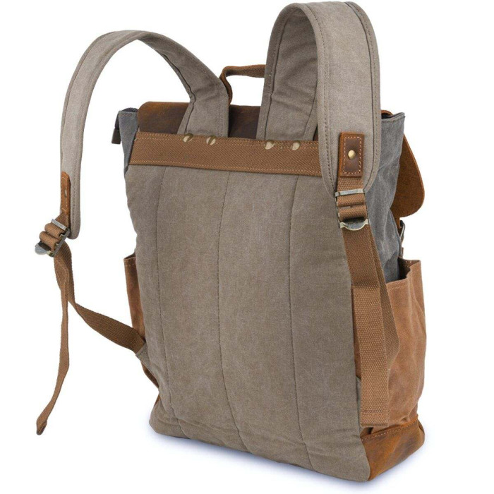 Місткий похідний рюкзак в поєднанні міцного текстилю канвас і вінтажної шкіри. Рюкзак виконаний в дуже виграшній комбінації. Виріб прекрасно буде виглядати з різними стилями одягу від кежуал до спортивного. Одна модель підійде на кілька сезонів. Ми на 100 відсотків впевнені, що ви проносите рюкзак далеко не один рік. Доповнено рюкзак зручними бічними кишенями і кишенею на лицьовій стороні. У бічні кишеньки ви можете помістити пляшку з водою або парасольку. Якщо ви не знаєте що подарувати мандрівникові - купіть йому такий рюкзак. Без нього не обійдеться жодна подорож.