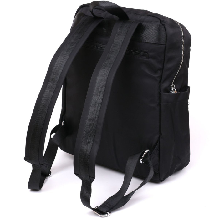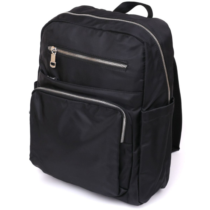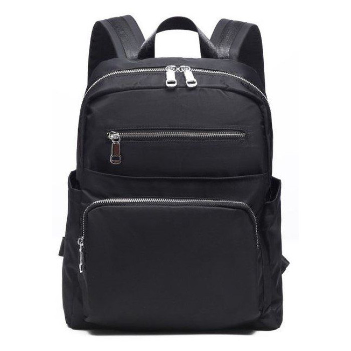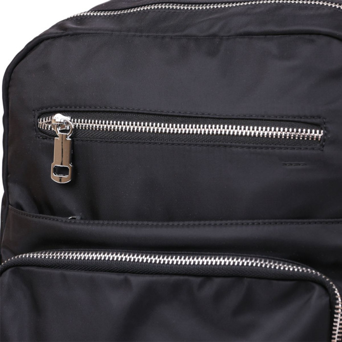 Зручний міський рюкзак з якісного нейлону. Аксесуар доповнено міцною фурнітурою сріблястого кольору в дизайн аксесуару. По краях модель прошита чорною ниткою. Рюкзак не має важкої ваги і відмінно підійде як для ноутбука так і для навчання або роботи. З рюкзаком ви можете відправитися в нетривалу подорож або на пікнік. Аксесуар має відмінний функціонал з різноманітністю кишень, в які ви можете помістити гаманець, телефон, сигарети, воду, парасольку і інші необхідні речі для повсякденного життя. Рюкзак досить довго носиться і не вибагливий у догляді. Може бути прекрасним подарунком для близької людини. Упакований в тканинний захисний чохол.