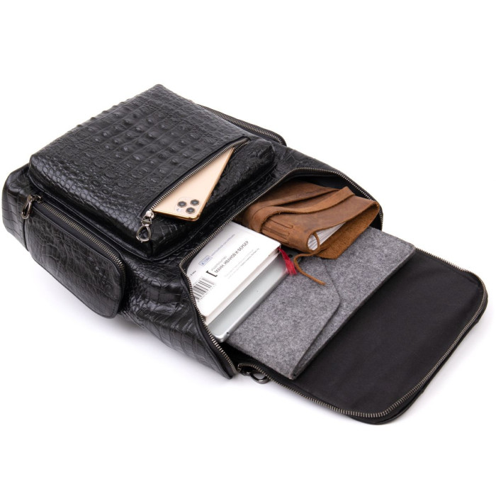 Місткий рюкзак з щільної шкіри, яка тримає форму. Виріб під рептилію. Рюкзак дуже функціональний і практичний. Підійде дана модель як для подорожей, так і на кожен день і як рюкзак для ноутбука. Виглядає дуже солідно і дорого. З таким рюкзаком буде зручно і ваші руки залишаться вільними. На тильній стороні ущільнена спинка сітка для вашого комфорту. Рекомендуємо рюкзак до покупки як для себе, так і на подарунок.