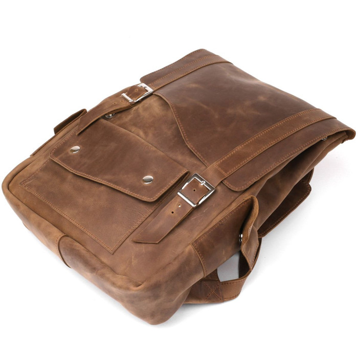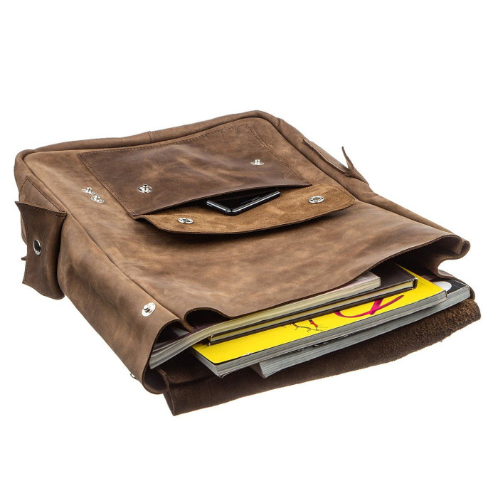 Зручний вінтажний рюкзак як для міста, так і для подорожі. У такий рюкзак ви можете вмістити з собою ноутбук. Варто звернути увагу, що в моделі відсутня підкладка. Всередині рюкзака тильна сторона шкіри. Аксесуар доповнено сріблястою фурнітурою в дизайн. Рюкзак приємний на дотик. Надійно прошитий міцною ниткою в темних тонах, яка надає аксесуару родзинку. Шкіра, з якої виконаний рюкзак користується особливою популярністю серед багатьох клієнтів. Її обирають за зовнішній вигляд, який змінюється в кращу сторону в процесі експлуатації, покриваючись розкішними потертостями. Ви можете самостійно регулювати наповненість рюкзака за допомогою ремінців і кнопок в моделі.