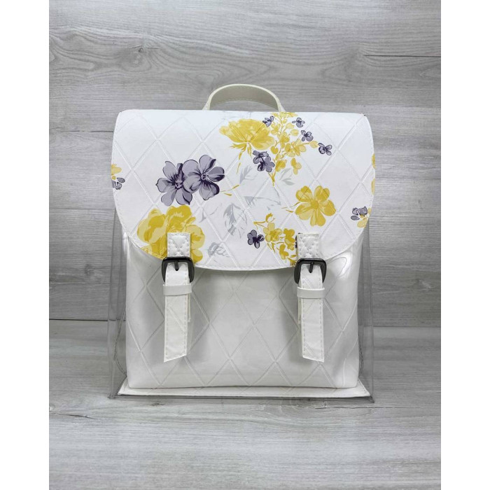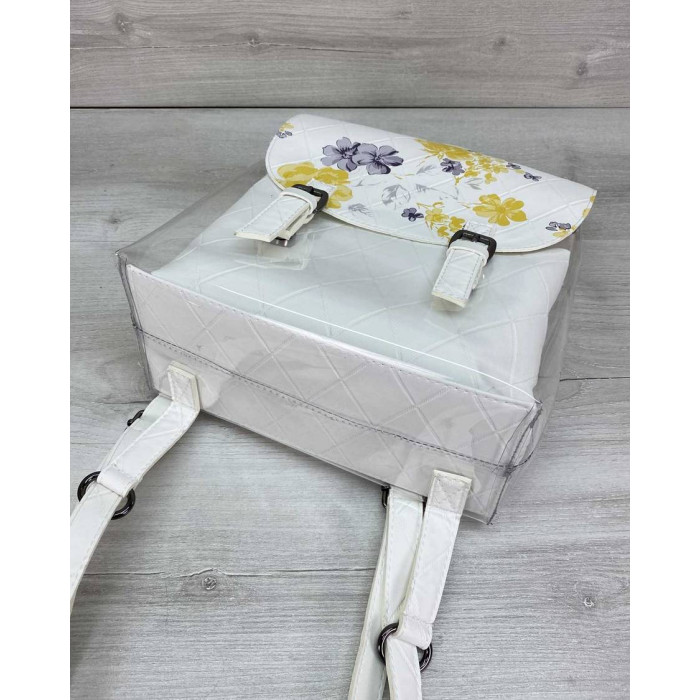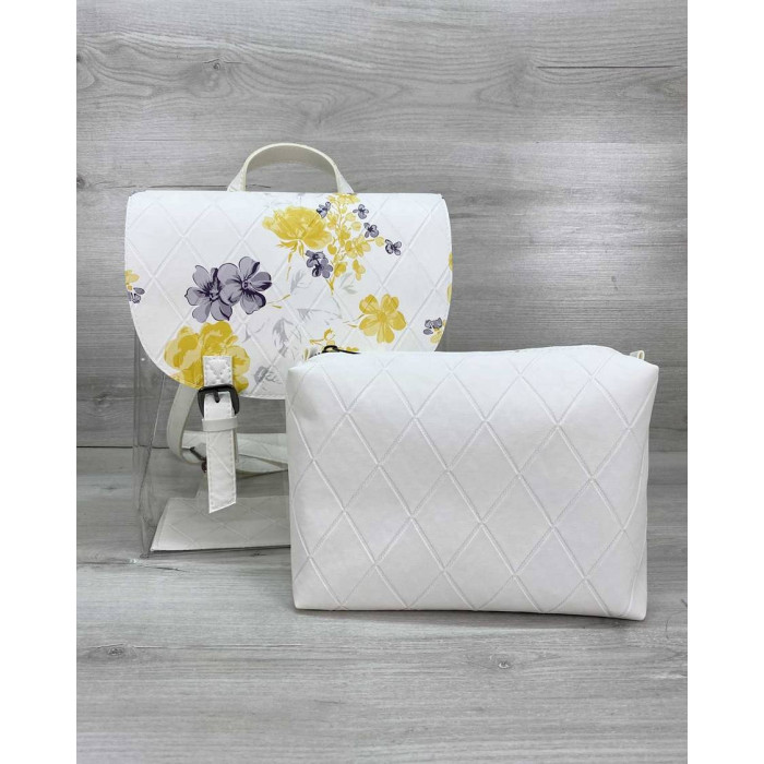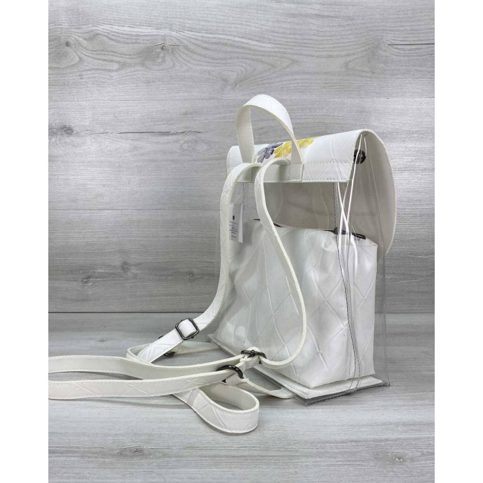 Стильний жіночий силіконовий рюкзак білого кольору з косметичкою абстракція, виготовлений зі штучної..