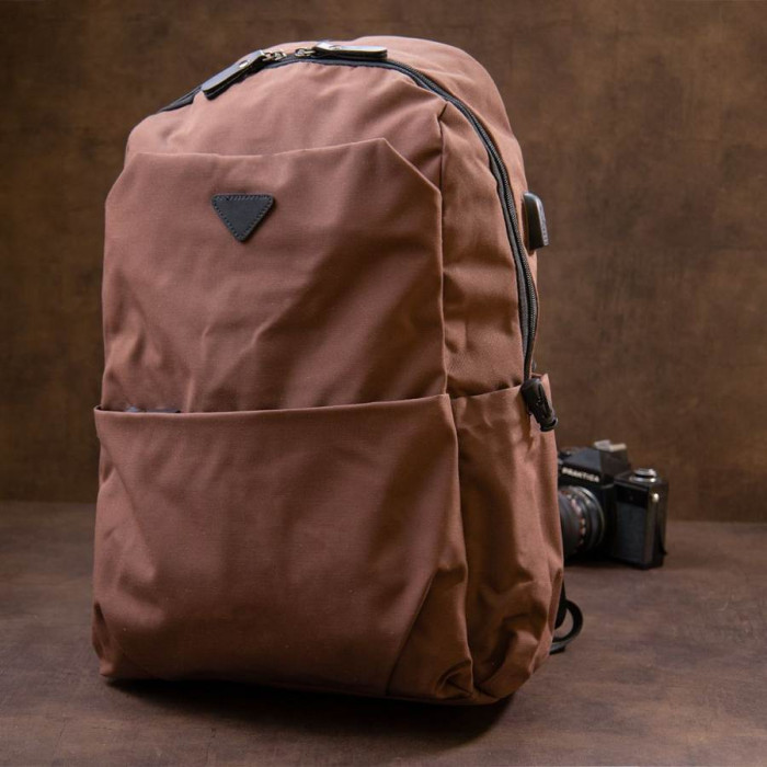 Легкий дорожній рюкзак під ноутбук з текстилю. Рюкзак дуже легкий і має практичний і зручний коричневий колір. У комплекті до рюкзака йде шнур. Виріб вміщує в себе ноутбук. Всередині - якісна підкладка сірого кольору. Виробництво - фабричний Китай високої якості. Текстильний рюкзак - ідеальний варіант в дорогу або для спорту. Модель має безліч кишеньок для вашої зручності і стане прекрасною покупкою для вас і ваших близьких.