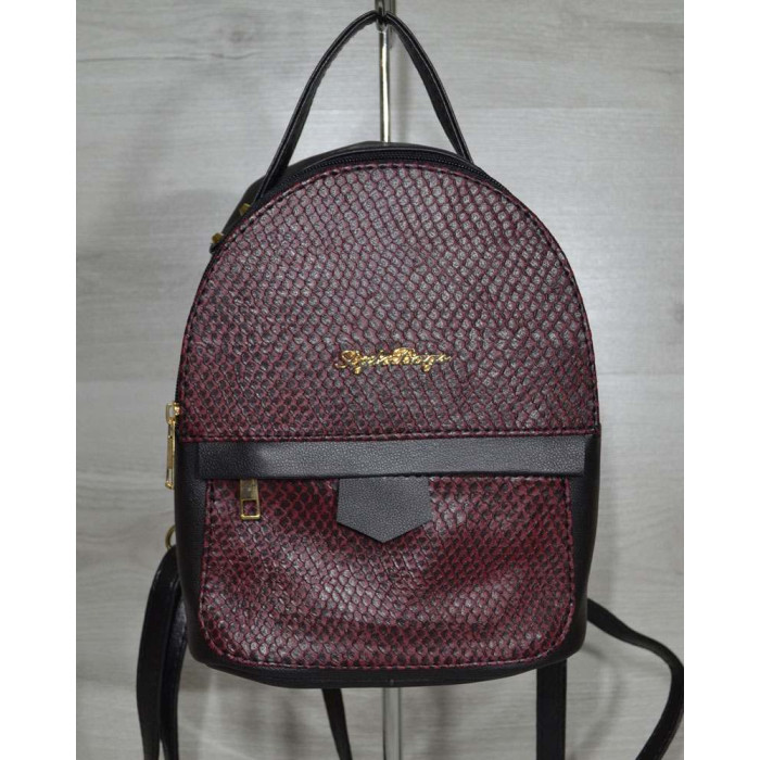 Рюкзак середнього розміру чорний з вставкою бордовою змією WeLassie