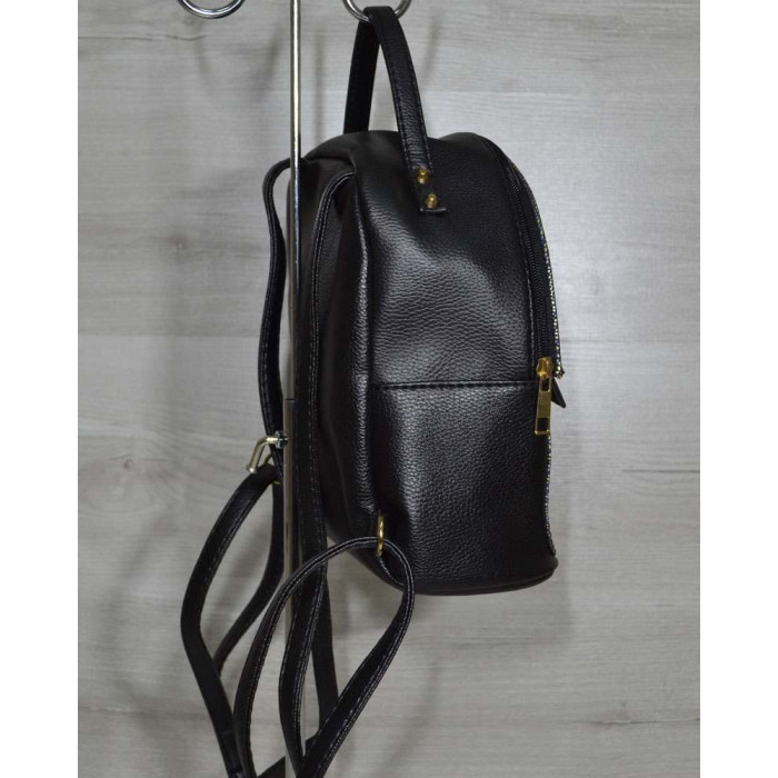 Рюкзак середнього розміру чорний з вставкою чорний крокодил WeLassie