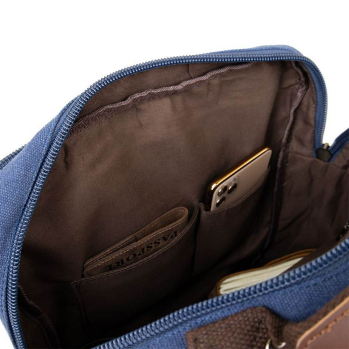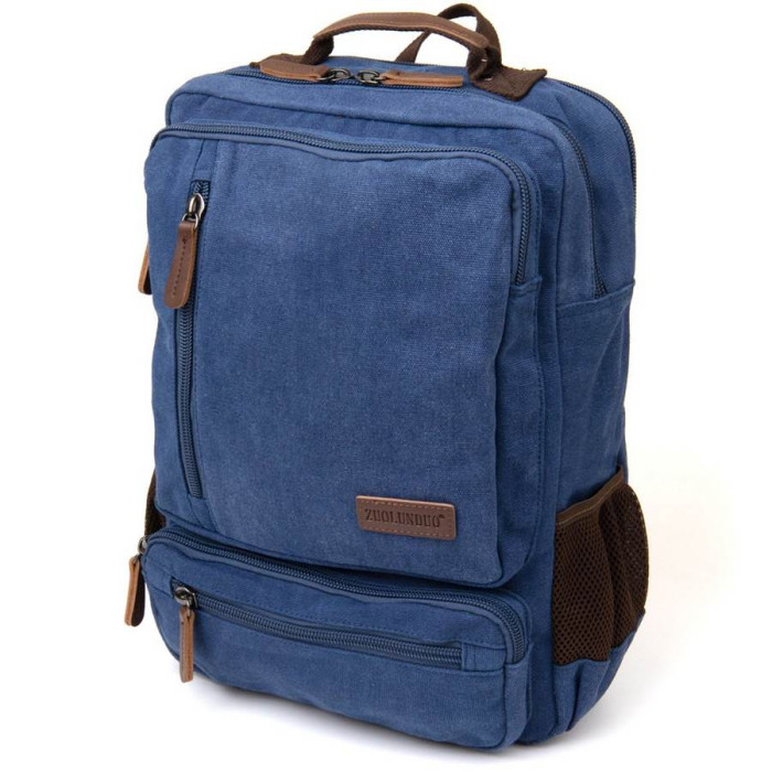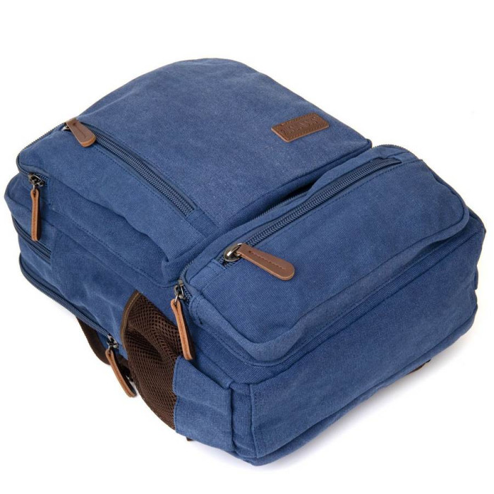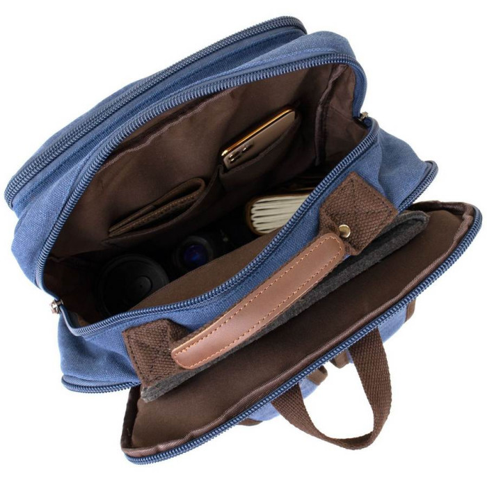 Великий рюкзак на два відділення текстильний синього кольору. Рюкзак дуже місткий. Виріб має дуже практичний функціонал. Рюкзак підійде для подорожей і відряджень. Незважаючи на свій великий розмір рюкзак не важкий. Закривається рюкзак на блискавку. Всередині - якісна підкладка. У рюкзак поміщається ноутбук. Текстильний рюкзак - бюджетне рішення для вашого комфорту.