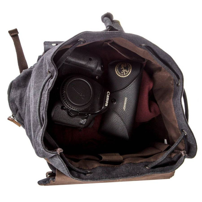 Текстильний рюкзак високої якості. Виробництво фабричний Китай високої якості. Рюкзак не мазкого чорного кольору зі шнурками-утяжками зверху і клапаном на кнопках. Якщо ви давно в пошуках рюкзака, який підійде в подорож і для ноутбука - рекомендуємо вам дану модель.
