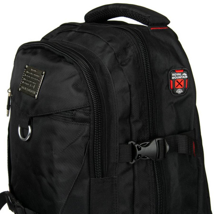 Туристичний рюкзак "Royal Mountain". Щільна спинка. Одне основне відділення з кишенею для ноутбука і кишенею для смартфона. Відділення може збільшуватися у висоту на 10 см. завдяки блискавки розширення. На фасаді знаходяться два великих кишені на блискавці, додаткова ручка і світловідбиваючі смуга. На бічних сторонах рюкзака кишені-сітки для пляшок води об'ємом 0,5 л. Плечові лямки регулюються по довжині і оснащені грудним ременем-стяжкою. Розмір (см.): 32 * 50 (+10) * 20