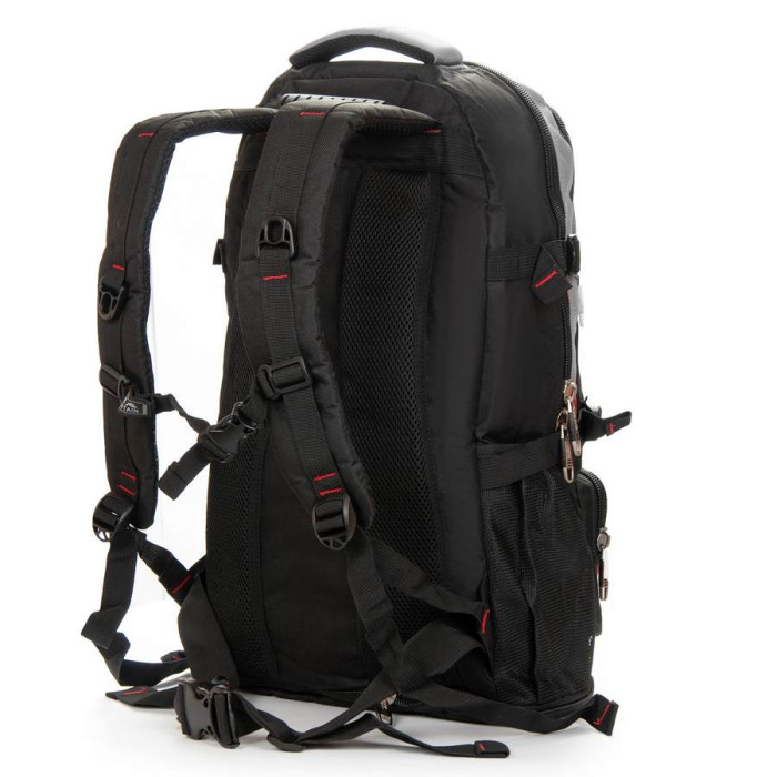 Ущільнена спинка. Одне основне відділення з кишенею для ноутбука і кишенею для смартфона. Відділення може збільшуватися у висоту на 10 см. завдяки блискавці розширення. На фасаді розташовані дві великі кишені на блискавці, світловідбивна смуга. На бічних сторонах рюкзака кишені-сітки для пляшок води об'ємом 0,5 л. Плечові лямки регулюються за довжиною й оснащені грудним ременем-стяжкою.