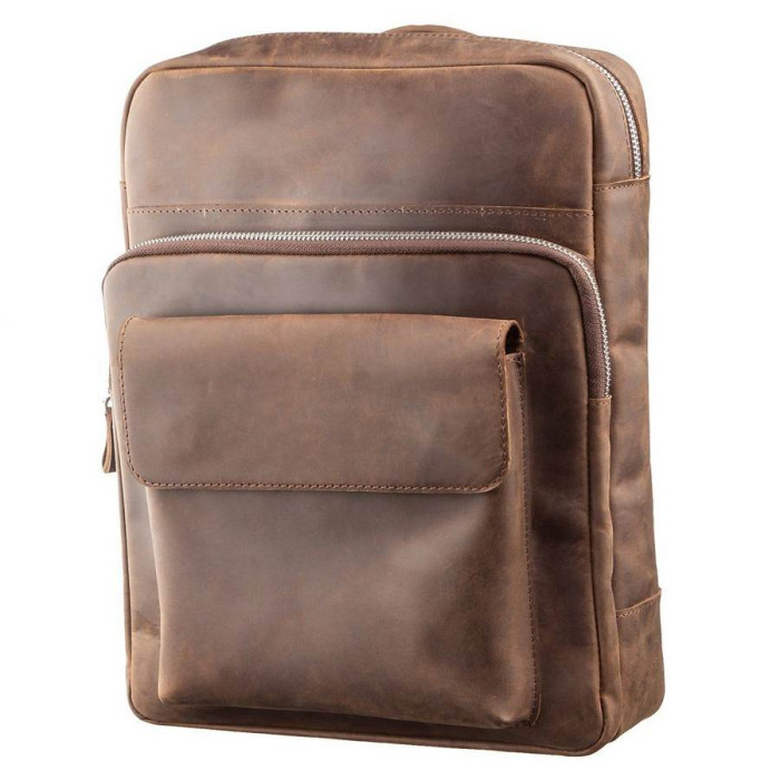 Рюкзак з натуральної шкіри Crazy horse. Підійде як для чоловіків, так і для жінок. Всередині рюкзака якісна текстильна підкладка коричневого кольору. Шкіряний рюкзак є відмінним рішенням для тих хто не хоче носити сумки. З рюкзаком дуже зручно. Рюкзак з натуральної шкіри ви будете носити далеко не один рік. Модель має оригінальний класичний дизайн і доповнена сріблястою фурнітурою.
