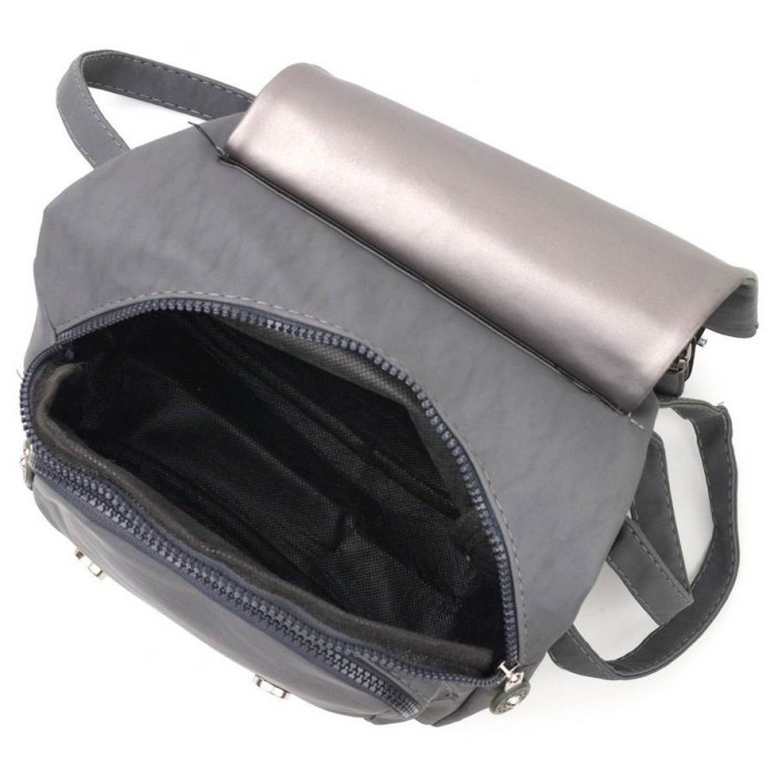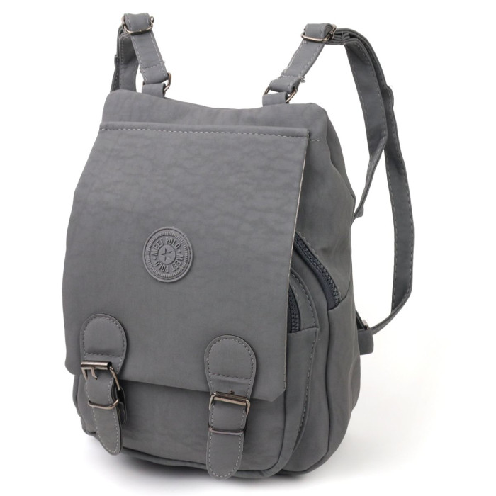 Легкий рюкзак-сумка з якісного текстилю, сірого кольору. Виріб має оптимальний розмір. Доповнено виріб міцною фурнітурою. Рюкзак має достатньо кишеньок для вашої зручності. Закривається клапаном на магнітах. Рюкзак стане чудовим подарунком для ваших близьких та друзів.