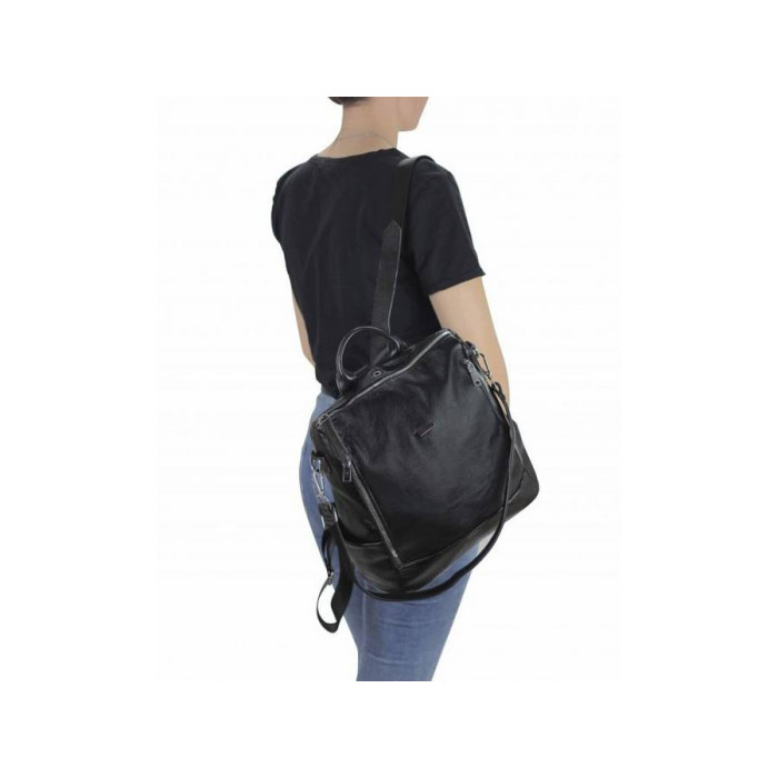 Модель виконана з натуральної шкіри з зернистою структурою, доповнена сріблястою фурнітурою. Для носіння рюкзака можна використовувати як плечові шлейки, так і шкіряну ручку. Рюкзак має одне основне відділення. З лицьового боку два вертикальних кишені на блискавці, з тильного боку вертикальну кишеню на блискавці. З боків є дві відкритих кишені. Усередині рюкзака кишеня, перегородка на блискавці, маленька кишеня на блискавці і дві кишені відкритого типу.