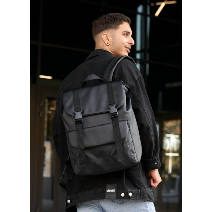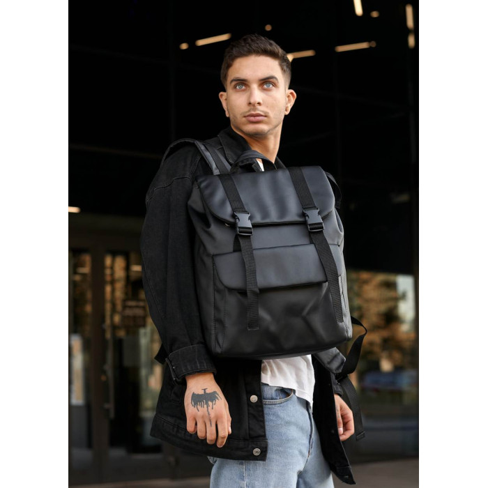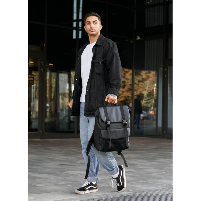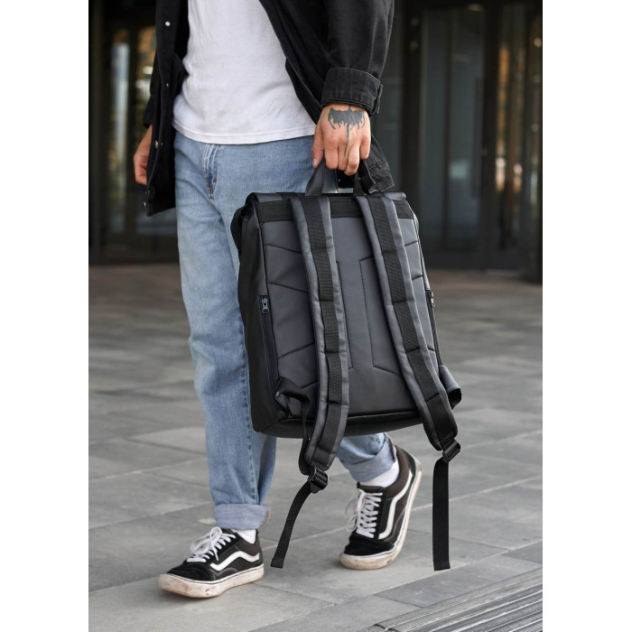 Чоловічий рюкзак ролл Sambag Loft Zard чорний з клапаном